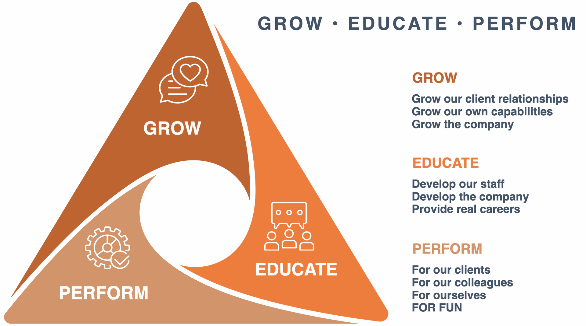 Our current five-year vision is very heavily focused on our team and the growth of our team. This includes not only growth in numbers of people, but also, and more importantly, intellectual growth. We measure our performance by our ability to deliver and the successes that we achieve. It is our team that drive performance and enable us to realise our vision.